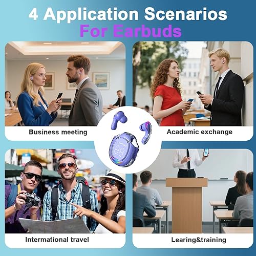 TWS AI Headphone for Multi-Language Translation, Bluetooth Earphone Support 144 Language Real-Time AI Translation, Wireless AI Earbuds Translator with App for Language Learning, Travel, Work (Purple)