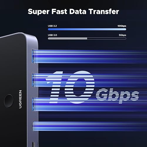 10 Gbps Transfer Speed: The USB-C switch is equipped with 4 USB 3.2 Gen 2 ports and speeds up to 10 Gbps. Faster than traditional 5 Gbps USB Switches, transfer 1 GB files in 1.5 seconds to improve work efficiency without waiting. (The USB ports are primarily for data transmission — audio connections and charging are not recommended.)