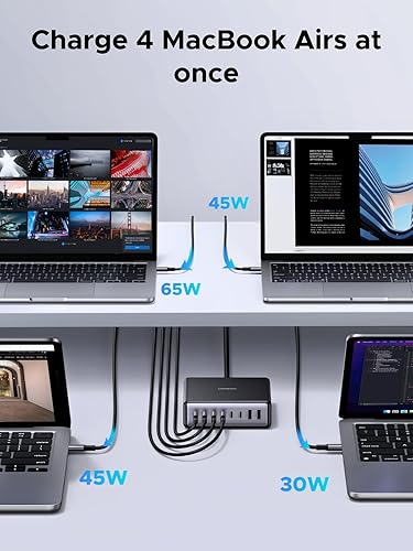 Powerful 200W Output: This 4-port USB C charger delivers power up to 200W with a single-port maximum output of 100W, supporting fast charging for high-performance devices like MacBook Pro Air, XPS 13, and HP laptops