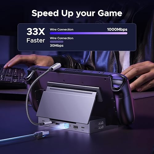 Widely Compatible: This handheld gaming dock is widely compatible with gaming consoles such as Steam Deck, ROG Ally, ROG X, LEGION Go and MSI Claw A1M. Also it is widely compatible with various USB-C devices to meet a variety of needs,like iPad Pro/Air, Surface Pro8 & Go 3. NOTE:NOT Compatible for Switch 2