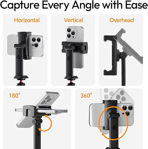 【Perfect for Multi - Scenario Use】Unleash your creativity! This phone tripod mount is your ideal partner for hands-free video calling on Zoom/FaceTime, professional vlogging, recording tutorials, watching movies, time-lapse photography, and much more. A must-have cellphone mount for content creators and everyday users.