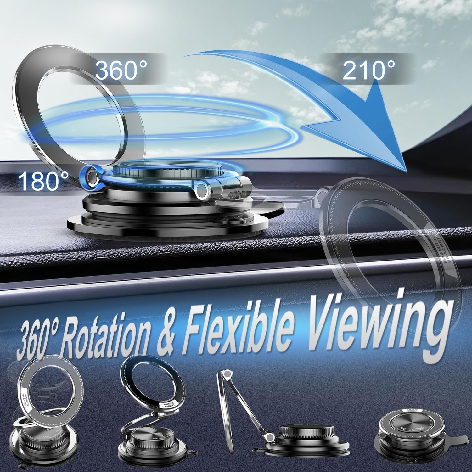 【Ultra-Slim & Space-Saving Design】Experience the future of mounting with our incredibly slim vacuum magnetic phone holder. At just half the size of most bulky suction phone holders on the market, it maintains a remarkably low profile on your dashboard. This means it never blocks your windshield view, ensuring a safer and cleaner look for your car's interior. It's the discreet and intelligent choice for modern vehicles.