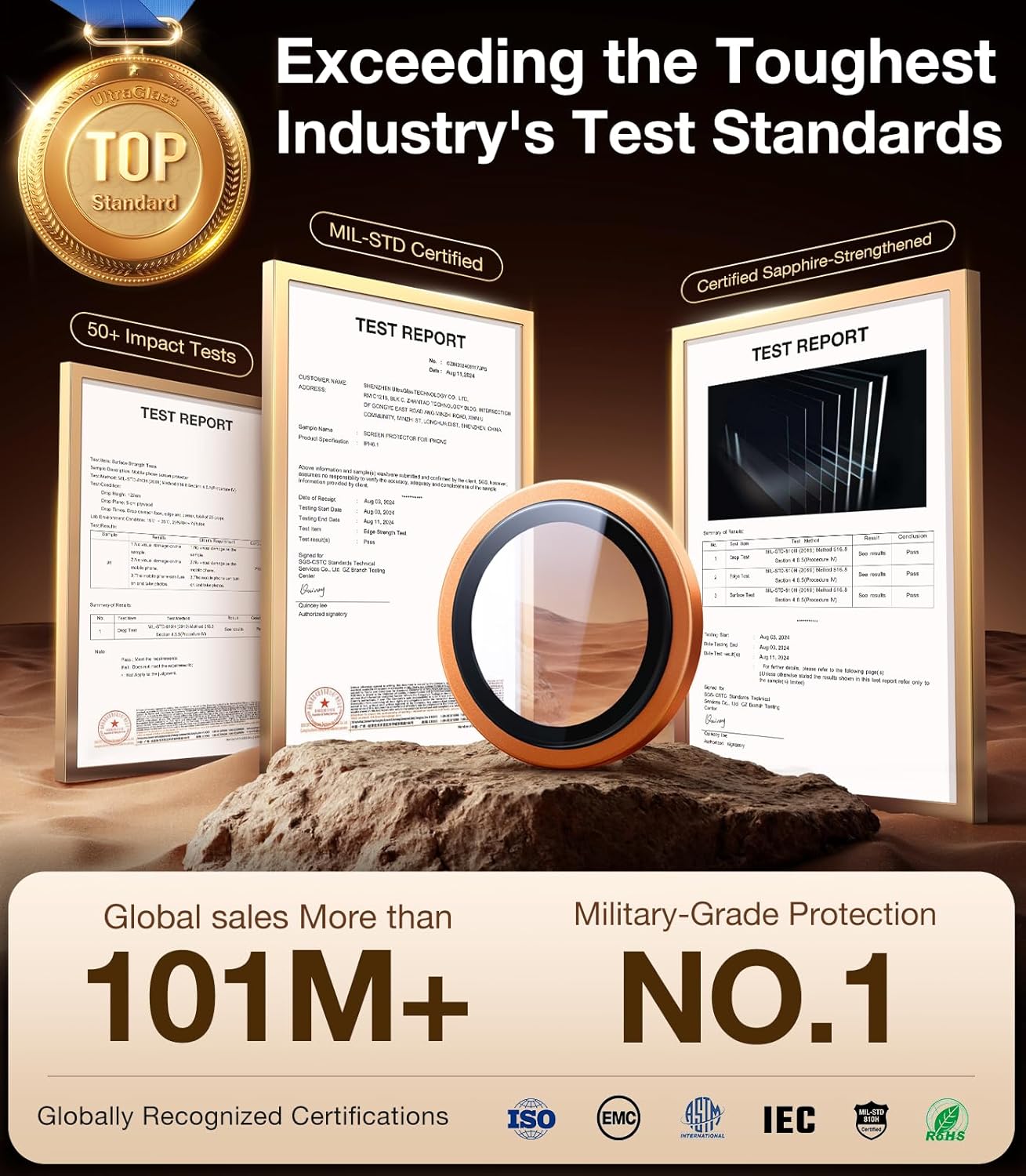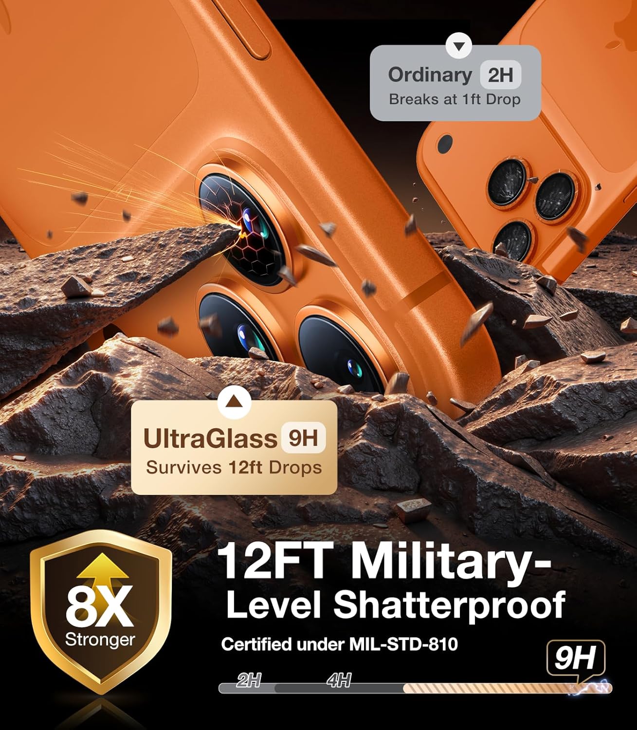 【Still Using Ordinary Glass on Your Sapphire Lens? Your New iPhone Deserves a True Top 9H+ Armor!】For 9 years, UltraGlass R&D has relentlessly innovated to improve its protection. In 2025, we pioneered the industry's first integrated sapphire-ion into 9H glass—delivering unparalleled shatter resistance and durability. Engineered exclusively for iPhone 17 Pro Max/17 Pro lens protection!