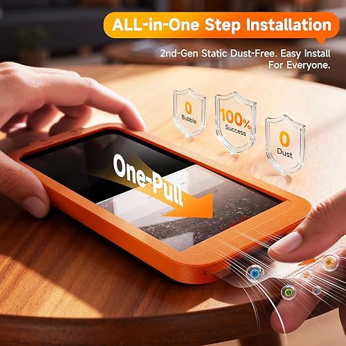 【One-step Installation, 100% Success】 Adopting a 1:1 automatic dust removal alignment frame and innovative electrostatic dust removal technology, even if you are a beginner, it ensures that you can complete the installation within seconds, with zero bubbles and zero dust. Say goodbye to any installation troubles!