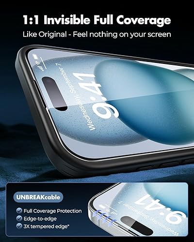 Comment on "UNBREAKcable 3-Pack Screen Protector for iPhone 16 Pro Tempered Glass - [One-Pull Perfection] [Auto Dust-Elimination] [9H+ Hardness] [99.99% HD Clear] Full Coverage for iPhone 6.3 inch(iPhone 15)"