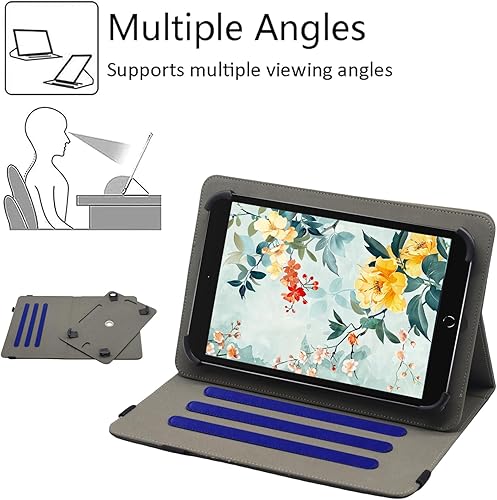 Universal 10 10.1 Inch Tablet Case, Viclowlpfe 360 Degree Rotating Multi-Angle Viewing Stand PU Leather Case for 9.6-11 Inch Android Tablet, Black(Dark Blue)