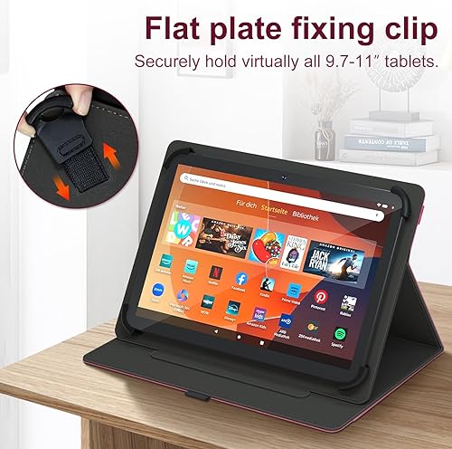 Elastic Band Design: Elastic band is flexible enough to compatible with all 9.6 - 11 inch tablet, strong elastic band holds your tablet firmly and safely; There are no camera holes.