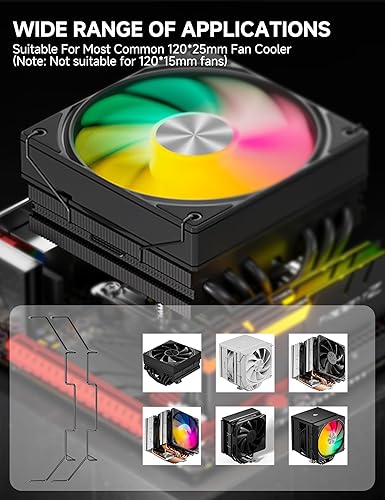【Wide Compatibility】Fits 90% of 120mm tower coolers and most 120X25mm fans (Note: Not suitable for 120X15mm fans), supporting continuous, hollow, and other fan styles for versatile cooling solutions.