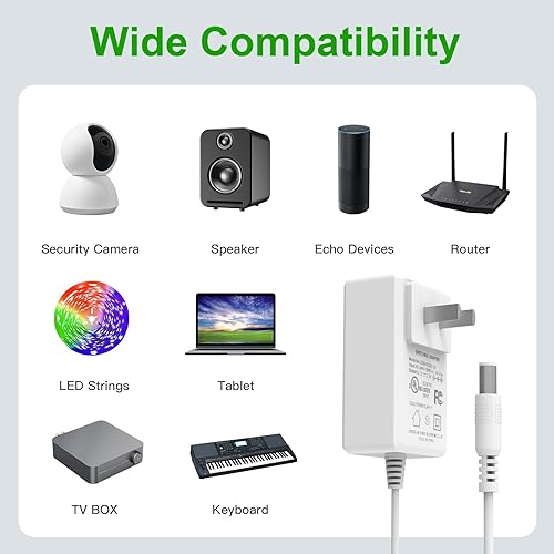 Compatibility: Works with devices requiring 12V DC: LED lights, IP cameras, routers, modems, and 12V appliances. Supports up to 24W load. Backward-compatible with older systems using 5.5mm x 2.1mm adapters.