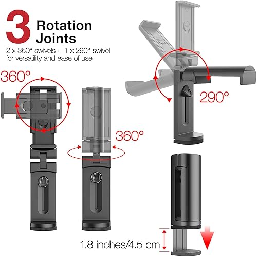 【Adjustable Angles】With its adjustable joints and 360° rotation design, this tablet holder stand allows you to easily adjust your tablet to the perfect angle and enjoy the best viewing angle, ensuring you can easily find the ideal viewing position. (Note: Clicking sound during the adjustment process is normal)