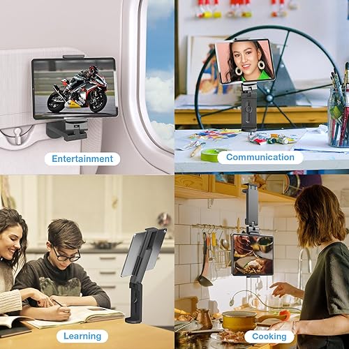 【Must-Have for Any Trip】This airplane tablet holder enhances your travel and home tablet experience, ensuring handsfree tablet use on planes and other modes of transportation. Easily attach it to the back of your seat or tray to save you the hassle of holding your tablet or balancing it on your lap