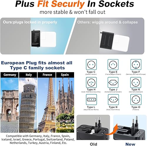 【Worldwide Travel Plug Adapter】Our power adapter equipped with type G/C/A/I standard global plugs accept sockets from over 200 countries and regions. Inserted stable and won’t fall off. Will be your best traveling companion to UK, Italy, Spain, France, Germany, USA, Australia, China, Japan, Thailand, Canada and more.