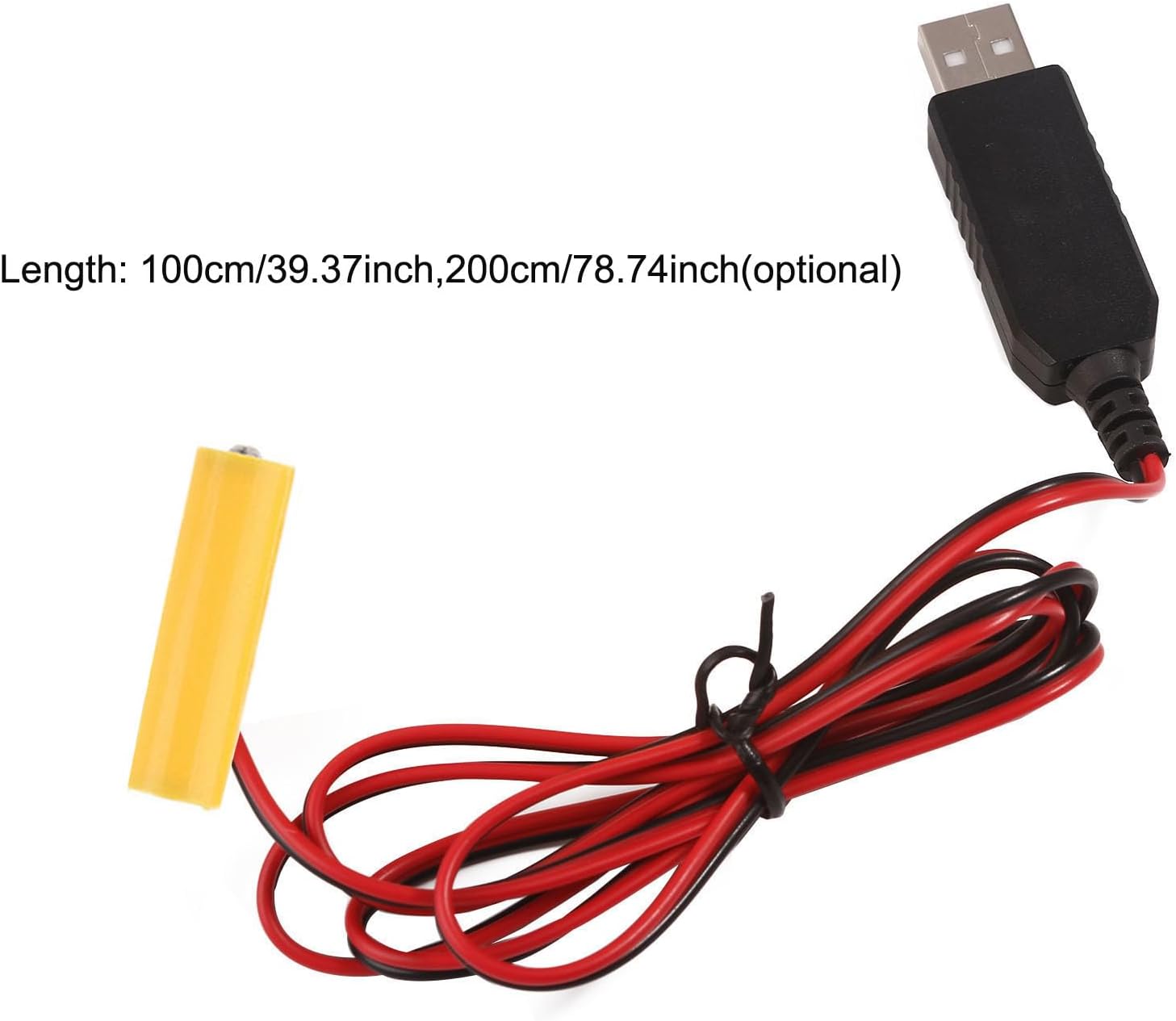 USB 5V to 1.5V LR6 AA Battery AA Battery Eliminators Cable Replace 1Pcs 1.5V AA Batteries for LED Light Electronic(1m)