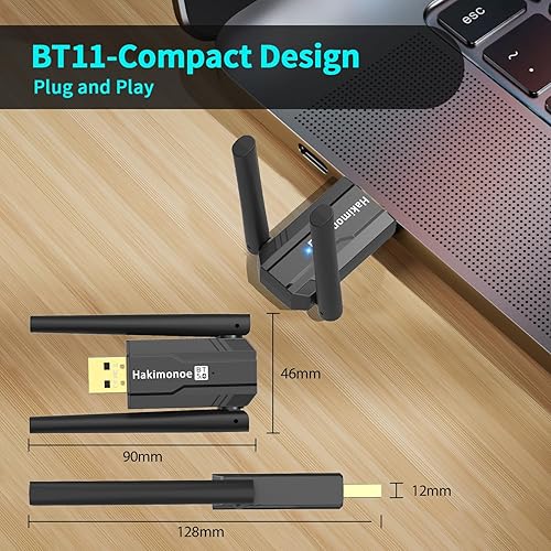 【UPGRADED BLUETOOTH 5.4 CHIP】BT11 USB Bluetooth Dongle is Engineered with the latest Realtek Bluetooth 5.4 chipset supports dual mode (BR/EDR + BLE). Greatly improves the stability of the connection data transfer speed, reduces the possibility of 2.4GHz signal interruption and gets low power consumption. It can link BR/EDR and BLE at the same time and is backward wide compatible with old Bluetooth 5.3/5.1/5.04.2/4.0/3.0/2.1/2.0/1.1. No delay, No loss!