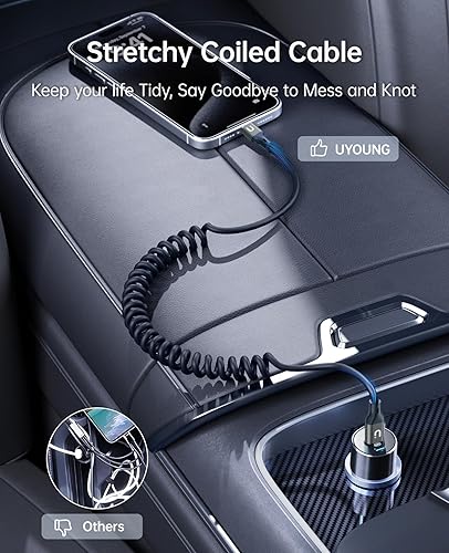 【Keep Your Car Clean and Tidy】 You will find it easier to keep your phone in spot in your car instead of all over the place. it is much neater and more convenient than a straight cable in your vehicle. The usb-c cables stretch out when you need them, but coil right up when not in use. The coil saves space and work well in a vehicle, a recliner, or in a home office.