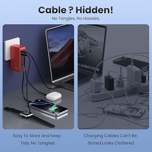 【Perfect Travel Companion】Our innovative wall charger comes with a foldable plug and a retractable charging cable that can be stored,and automatically retract. The lightweight design ensures you can take it anywhere anytime. When you're on the move, just fold the plug, retract the cables, and slip the charger into your bag or pocket.