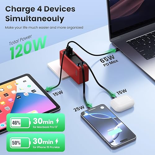 【Universal Compatibility】Equipped with USB C Port, USB-A port, retractable type-c cable, and retractable ios cable. This charger is compatible with nearly all electronic devices. Including laptops (Macbook,Galaxy Book4 Pro,Lenovo IdeaPad,ASUS Vivobook,HP Chromebook), tablets (iPad,Samsung Tab,Google Pixel Slate,Amazon Fire HD10/Kindle Fire HD 10), smartphones (Apple iPhone 17/16/15/14/13/12/11, Samsung Galaxy S24/23/22/21, Google Pixel), iPad Air/Pro/Mini, AirPods Pro, notebooks, headphones, watch, game consoles etc.