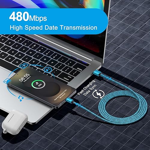 【Fast Charging and Data Transfer】: This car carplay cord with a current output of up to 3A allows you to experience faster charging speed, 25% faster compared with other usb a to usb c cable. Speed c cords braided type c charger fast charging cord will provide optimal voltage and stable current for your smartphones, also a fast usb to usb c transferring data cable up to 480Mbps.