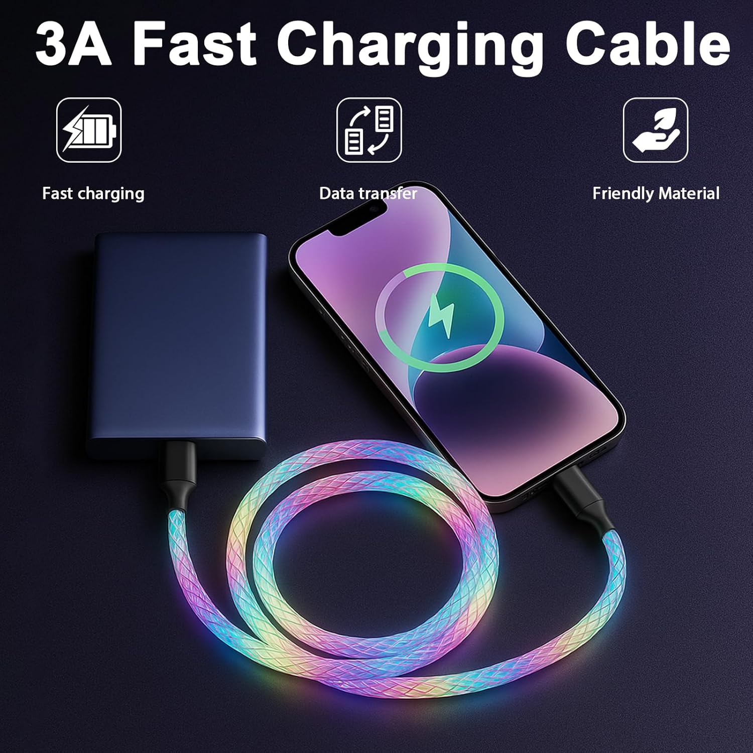 【Dynamic RGB Illumination 】 Vibrant LED Lighting for a Unique Experience. Brighten your charging sessions with our RGB LED Glowing Cable, offering a mesmerizing light show day or night. Turn everyday charging into a fun, eye-catching experience!