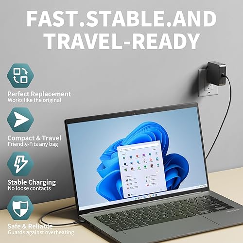 EXTENDED REACH & ORIGINAL-QUALITY REPLACEMENT – USB-C computer charger combines the convenience of a lengthened power cable with original-equivalent performance. Designed as the perfect replacement for lost or damaged chargers, it delivers stable, reliable power while offering enhanced flexibility—the extended cord easily reaches outlets at home, in the office, or while traveling. Works just like your original charger but with added practicality for any environment.