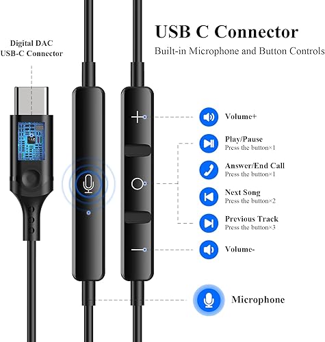 Ultimate Convenience: Enjoy hands-free calls and voice control with our USB C Earbuds, featuring an inline microphone and remote control for easy song switching and volume adjustment