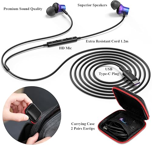 Handy Storage Case: Keep your USB C Earbuds organized and protected with the included handy storage case, making it easy to carry your USB Type-C Headphones wherever you go