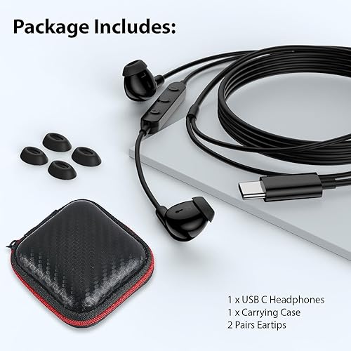 Handy Storage Case: Keep your USB C Earbuds organized and protected with the included handy storage case, making it easy to carry your USB Type-C Headphones wherever you go