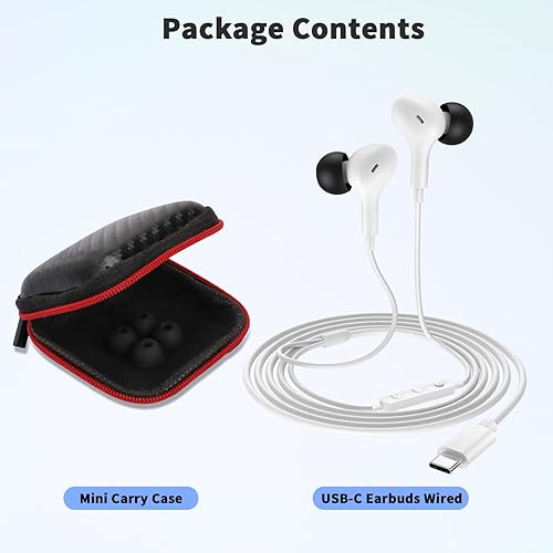 Comfortable to Wear: our usb c wired earbuds perfect fit for small ear canals.in-ear design can effectively isolate and reduce external noise,With an ergonomic angle design,come with 3 sizes ultra-soft silicone ear tips,provide maximum comfort and a secure fit without pressure pain