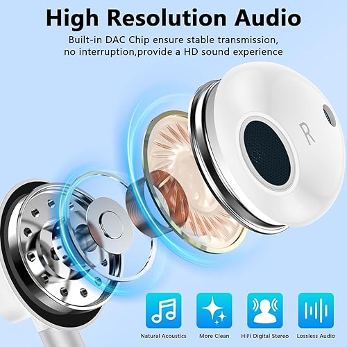 【Perfect Stereo Sound】:The iPhone 17 Pro Max usb c headphones adopt the latest innovative technology and Hi-Res & DAC digital decoder chip, reduces the loss in the sound transfer and making output sound quality more clear and realistic. This advanced noise canceling USB C Earphones ensures high fidelity lossless sounds quality and bring people an immersive listening experience. you can enjoy an authentic live music experience.