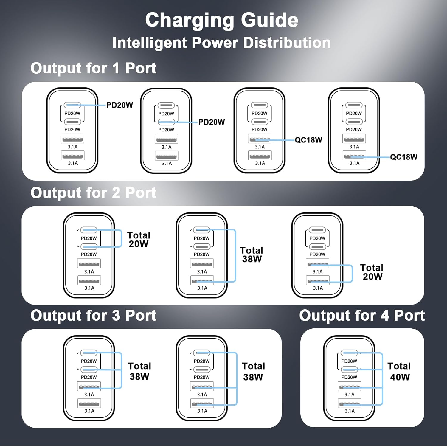Safe and Reliable Multi port USB C Block -- The c type charger cube built-in safeguards to protect your devices against short circuit, over-current, over-voltage, over-heating and over-charging. Made of ABS + PC fireproof material, guarantees a secure and fast charging experience. ,you can trust in the safety and reliability of our usb-c phone charger fast charging block.
