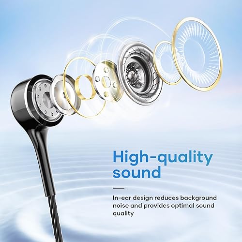 【High-Quality Sound Performance】: A combination of heavy bass and stereo sound makes the wired headphones deliver a more distinctive sound for you, The earbuds with microphones adopt a metal composite diaphragm technology that further optimizes the vocals and midrange sound, making you more enjoy the fun of music
