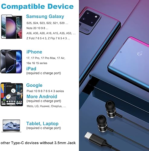 【Universal Compatibility】compatible with iPhone 17, 17 Pro max, 17 Pro, 17 Air, 16e, 16, 16 Pro Max, 16 Pro, 16 Plus, 15, 15 Pro Max, 15 Pro, 15 Plus, Samsung Galaxy S25, S25+, S25 Ultra, S25 Plus, S24 FE, S24 S23 S22 S21 S20 Series, Note 20 10, Z Fold 7 6 5 4, Z Flip 7 6 5 4, A56 A36 A26 A16 A15 A53 A03s 5G, Tablet, and more devices with USB C audio port