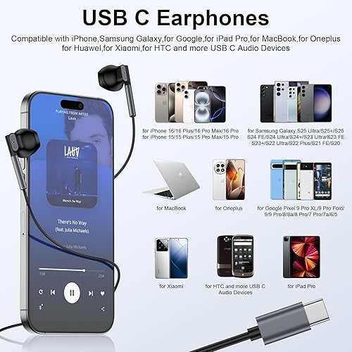【Compatibility】USB C Wired Earbuds compatible for iPhone 17 Pro Max/Air/17 Pro/17/16 Plus/16 Pro Max/16e/16/16 Pro/15/15 Pro/15 Pro Max/15 Plus; Samsung Galaxy S25 Ultra Z Fold 7 SE 6 5 Z Flip 7 6 5 S25 Edge S25+ S24 Plus S24 FE S24 Ultra S23 FE S23 Ultra S22 S21 S20, A17 A16 5G A36 A56 A26 A06 A15 A25 A54 A14 A35 A55 A53 A13 A03s A24 A23,Note 20 10; Google Pixel 10 Pro XL,10 Pro Fold,10,9a,9 Pro XL,9 Pro Fold,9 Pro,9,8a,8 Pro,8,7a,7 6Pro; Moto Razr+2025 G Power 2025 Edge 2025 Razr 60 Ultra.