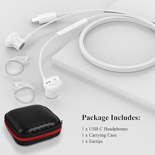 Handy Storage Case: Keep your USB C Earbuds organized and protected with the included handy storage case, making it easy to carry your USB Type-C Headphones wherever you go