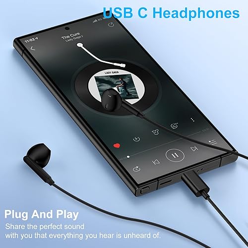 [Comfortable Semi-in-ear Design] - USB-C Comfort & Clarity. These ergonomic USB-C wired earbuds for Samsung Galaxy S25+/Google Pixel 10 9a (and most USB-C devices without 3.5mm jack) deliver balanced sound with reduced listening fatigue, featuring immersive audio in a lightweight semi-in-ear design, ambient sound mode to stay aware of surroundings, and clear voice calls with enhanced microphone tech—perfect for workouts, commuting, or focused work sessions.