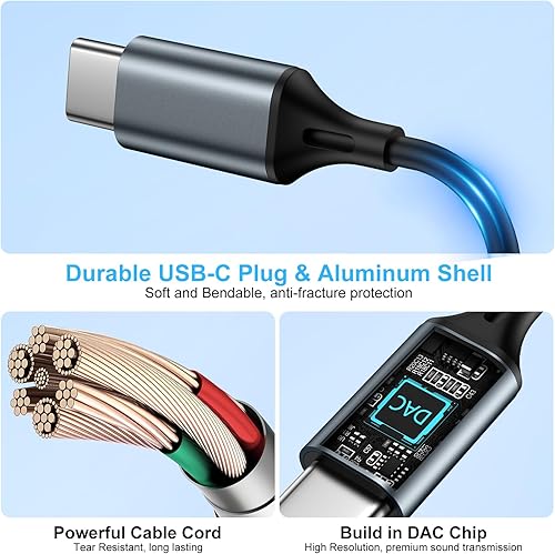 [Type-C Clarity & Hi-Fi] - Engineered with premium tangle-resistant TPE cables (1.2m/4ft) and a built-in DAC chip for minimal sound loss, this samsung galaxy S24 FE USB-C headphones wired type c earbuds deliver high-quality audio: crystal-clear calls, immersive Hi-Fi stereo, and lag-free gaming. The anti-tangle design ensures easy pocket/backpack storage—perfect for daily commutes, work, and travel.