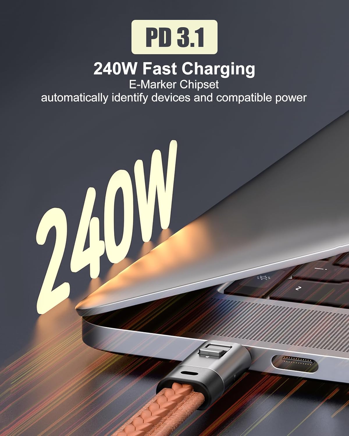 【PD 240W Fast Charging】Experience lightning-fast charging with Power Delivery (PD) technology, supporting up to 240W. The short usb c to usb c cable delivers rapid power to your devices, significantly reducing charging time for smartphones, tablets, and laptops. Whether you're topping up your phone during a commute or powering a high-performance device, this cable ensures efficient, safe, and reliable charging every time. Stay powered up and ready for action with minimal downtime.