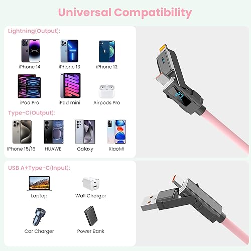 Comment on "USB C/Lightning 4-in-1 Universal Multi USB Charging Cable LED Display for iPhone,Pink 240W Max Fast Charge Cord & Data Transfer Apple iPhone 16/15/14/13, iPad, Samsung, MacBook, iPad,Tablets -5FT"