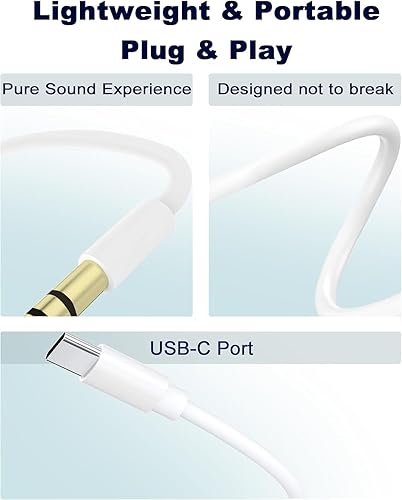 Compatible Phone Models: Type C to 3.5mm Headphone Car Stereo Cord Compatible with iPad Pro 13-inch (M4), iPad Pro 12.9-inch (1st, 2nd, 3rd, 4th, 5th, and 6th gen), iPad Pro 11-Inch (M4), iPad Pro 11-inch (1st, 2nd, 3rd, and 4th gen), iPad Air 13-Inch (M2), iPad Air 11-Inch (M2), iPad Air (4th, and 5th gen), iPad Mini 8.3-inch (7th generation, A17 Pro) 2024, iPad mini (6th gen); Lenovo Tablet, Samsung Galaxy Tab, Surface pro, and more Android tablets, USB C to 3.5mm Audio Aux Jack Cable compatible with iPhone 17, iPhone 17 Air, iPhone 17 Pro, iPhone 17 Pro Max, iPhone 16e, iPhone 16, iPhone 16 Plus, iPhone 16 Pro, iPhone 16 Pro Max, iPhone 15, iPhone 15 Plus, iPhone 15 Pro, iPhone 15 Pro Max, Samsung Galaxy S25 Ultra / S25+ / S25 / S24 Ultra / S24+ / S24 / S23 Ultra / S23+ / S23 / S22 Ultra / S22+ / S22 / S21 FE / S21 Ultra / S21+ / S21 / S20 FE / S20 Ultra / S20+ / S20 / S10e / S10+ / S10 / S9+ / S9 / S8+ / S8 / Z flip / Z fold / Note, Google Pixel 10 / 10 Pro / 10 Pro XL / 9 / 9 Pro / 9 Pro XL /9 Pro Fold / 8A / 8 / 8 Pro / 7 / 6 / 6 Pro / 5 / 5 XL / 4 XL / 4 / 3 X L/ 3 / 2 / 2 XL, Samsung Galaxy AI Series, Samsung Galaxy A Series, Galaxy Z Fold Series, Galaxy Z Flip Series, LG, Nokia, Sony, Motorola, Huawei, HTC, ZTE, Xiaomi, OnePlus, Blackberry Nexus, and more Android Phones, USB C to 3.5mm Car Stereo Speaker Headphone Aux Cord Compatible with MacBook Air (2018 and later), MacBook Pro (2016 and later), MacBook (2015–2017), iMac (2017 and later), iMac Pro (2017), Mac mini (2018 and later), Mac Studio (2022 and later), Lenovo Yoga / XiaoXin / ThinkPad, Surface Laptop / Go /Pro / Book / ProX, HP Spectre / ENVY / EliteBook / Pavilion / Chromebook / Victus 15.6' Gaming Laptop, Dell XPS / Inspiron / Latitude / G15 Gaming Laptop, ASUS ROG Zephyrus G15 / Vivobook 14s / Zenbook Series, Google Pixelbook Go, Google Chromebook, HONOR Laptop and more Windows Laptops. See more
