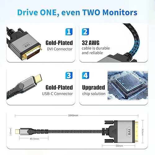 Reliable & Durable Quality - USB C to DVI adapter with gold plated connectors for extra durability, high strength PVC wear-resistant cable can make sure the cable last for years without breaking. Built-in screws design ensures a stable connection, reinforced casing for better heat insulation. Fits snugly with the USB-C ports on your devices for firmly signal transfer.