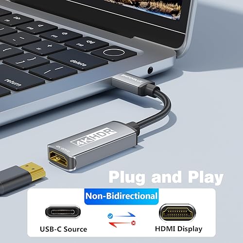 【4K Ultra HD Visual Feast】This USB-C to HDMI adapter supports resolutions up to 4K@60Hz, while being backward compatible with 1440P@60Hz and 1080P@120Hz. Seamlessly transmits 3840x2160 resolution for crystal-clear visuals and smooth video playback. Ideal for HD monitors, TVs, and projectors, meeting diverse device and usage requirements. Note: USB-C port must support DisplayPort Alternate Mode. Not compatible with portable displays or ultra-wide monitors