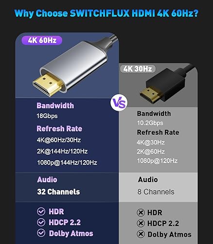 【Amazing 4K Visual Effects】The USB C to HDMI cable supports up to 3840*2160@60Hz resolution for extraordinary HDR visual clarity at smooth 60Hz in stunning 4k UHD resolution, with perfect audio pass-through to immerse you in true cinematic enjoyment. Backward compatible with 3840*2160@30Hz, 2K@120Hz, 1080P