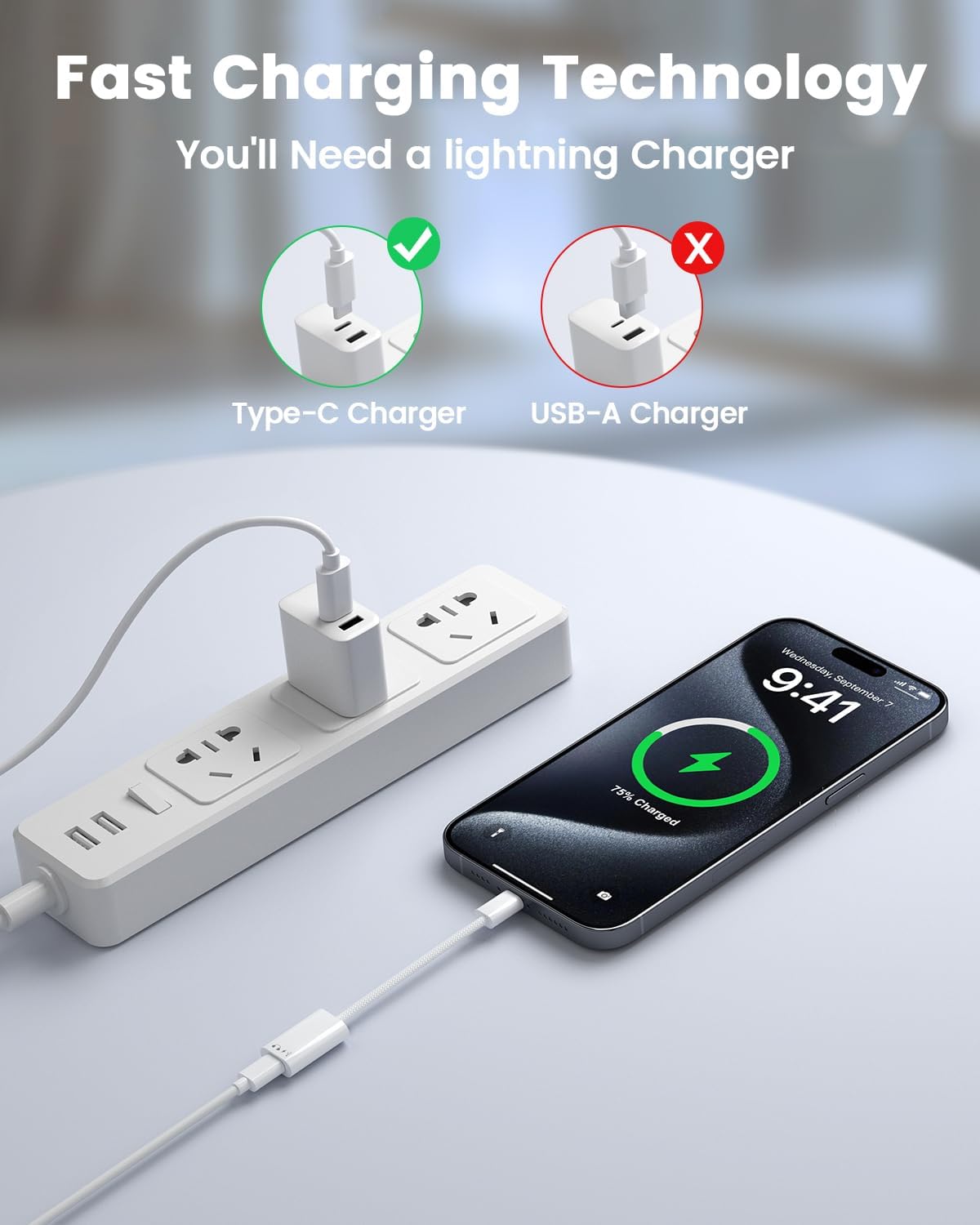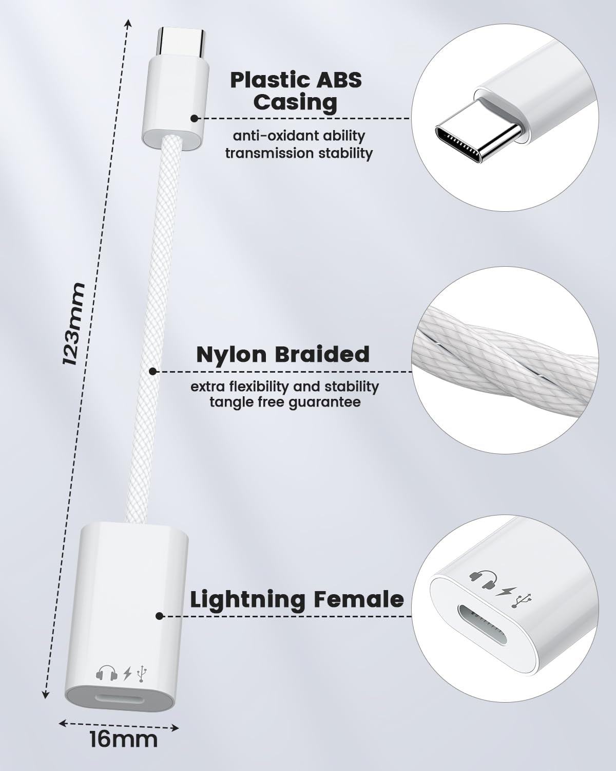 3-in-1 Lightning to USB C Adapter: Charge, Sync & Audio, Simplify your setup with this compact USB-C to Lightning adapter that supports charging, data transfer, and audio in one. Works smoothly as a lightning to usb c adapter, usb-c to lightning adaptor, or type c to iPhone adapter—no extra drivers required