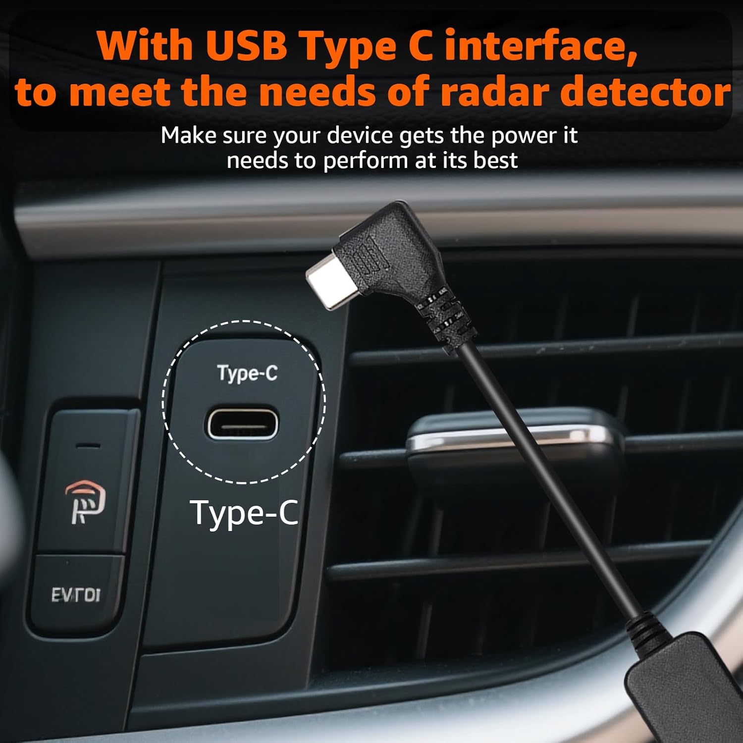 【USB C to RJ11 for Modern Vehicles】Designed with future-proof connectivity, this radar detector power cord features a USB-C end that seamlessly integrates into 2019 and newer vehicle models equipped with PD3.0+ Type-C charging ports, ensuring broad compatibility and fast charging support.