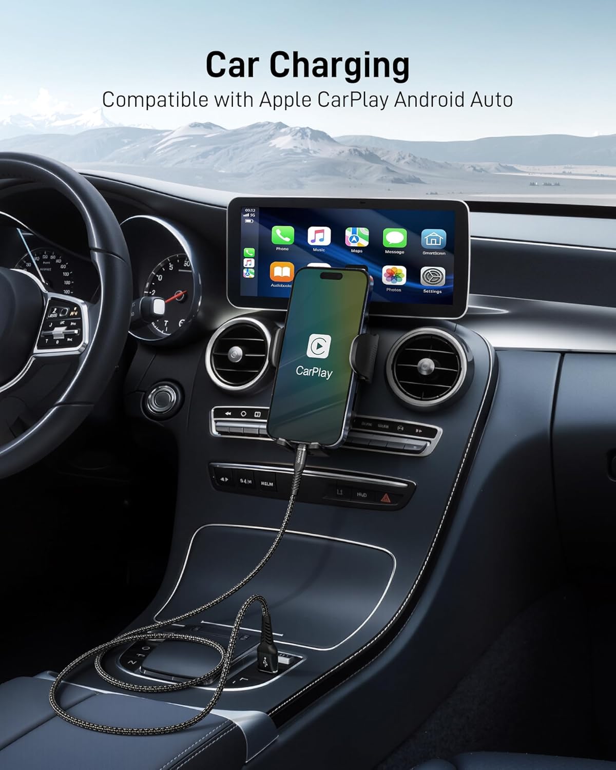 [Revolutionary USB C Charging Cable Long] This USB C cable uses PD3.1 Extended Power Range (EPR) technology to achieve 240W high-speed charging and is backward compatible with 140W/100W/60W electronic devices. Upgrade the intelligent E-Marker chip to dynamically adjust while providing efficient power supply, actively reduce current, and avoid equipment damage due to overheating and overload. The USBC Cable is compatible with CarPlay and Android Auto, and its 10 foot length is just right for charging the front and rear passengers of the car.