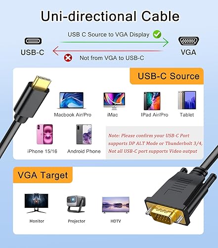 Comment on "USB C to VGA Cable 6FT, 1080P@60Hz USB Type C to VGA Adapter Video Converter [Thunderbolt 3/4 Compatible] with MacBook Air, iPad Pro, iPhone 15/16, iMac, XPS, Surface etc-Gold-Plated Male Interface"