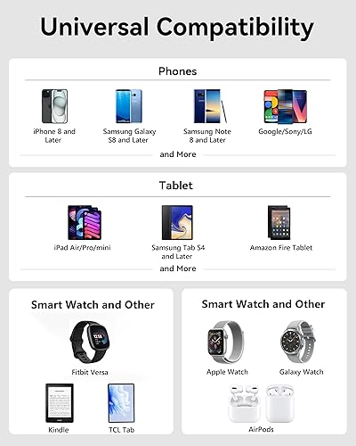 【Universal Compatibility】: iPhone 17/16/15/14/13/12/Pro/Pro Max/Plus/mini, iPad Air/Pro/mini, Galaxy S25/S24/S23/S22/S21/S20, Note 10/10+/20/20 Ultra, Pixel 9/8/7/6/5/4, iWatch Series 10/9/8/7/6/5/4/3/2/1/SE/SE2/Ultra 2, Versa 4/Sense 2 and more
