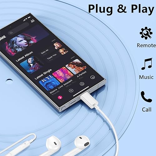 【Built to Last】:The usb c headphones samsung wired earbuds is constructed with TPE material, which has undergone over 20,000 bend lifespan tests, ensuring flexibility and durability. The cord measures 4ft/1.2m and is reinforced for unrestricted use. make you enjoy unrestricted movement and comfort for extended use.