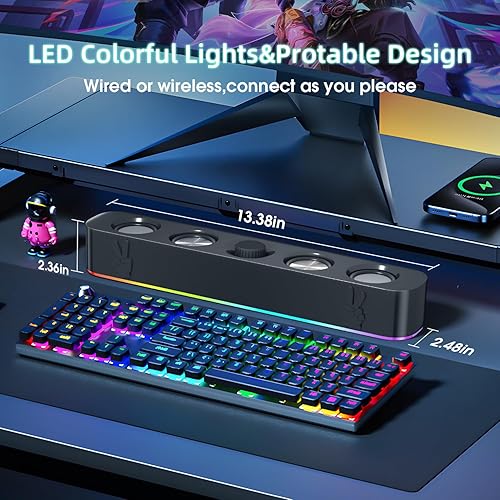 USB Computer Speakers,Wired USB-Powered Bluetooth Computer Sound Bar with RGB & Volume Knob for PC Desktop Computer and Laptops(Black)