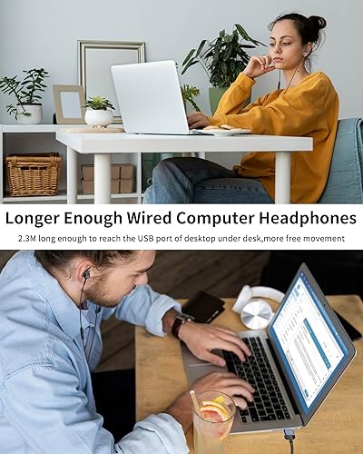 Clear Call &In-Line Control: This USB Earbuds with microphone is equipped with a high-definition mic /multi-function button for convenient voice and calls,ensuring clear communication during calls and conferences.in-line control button allow you to play/pause songs, answer/end calls,mute the mic and other function